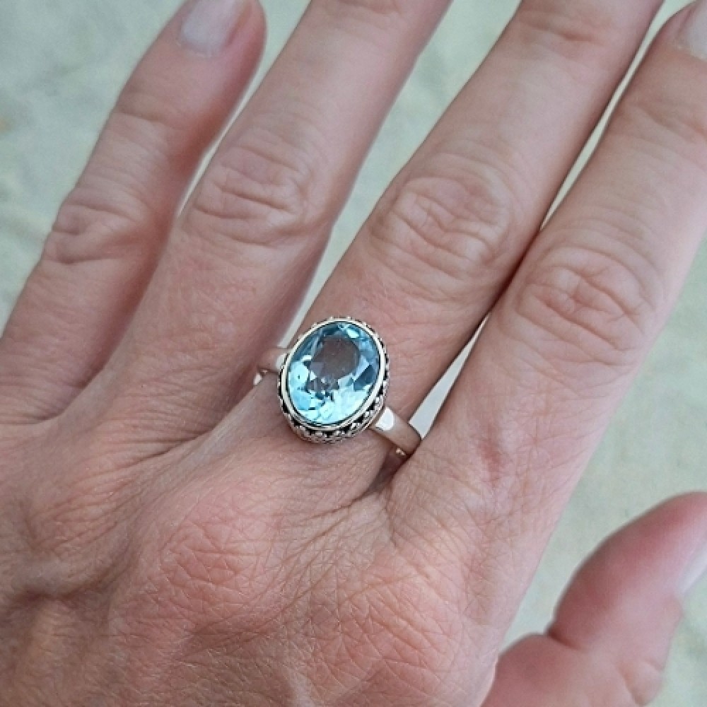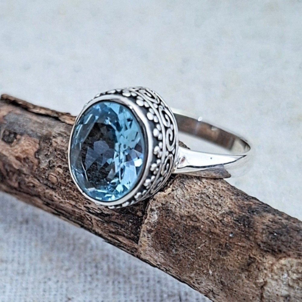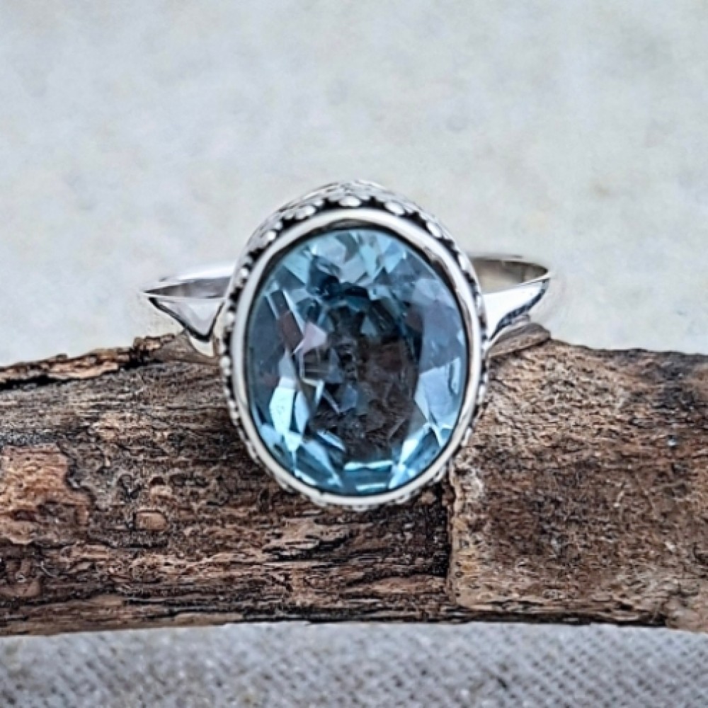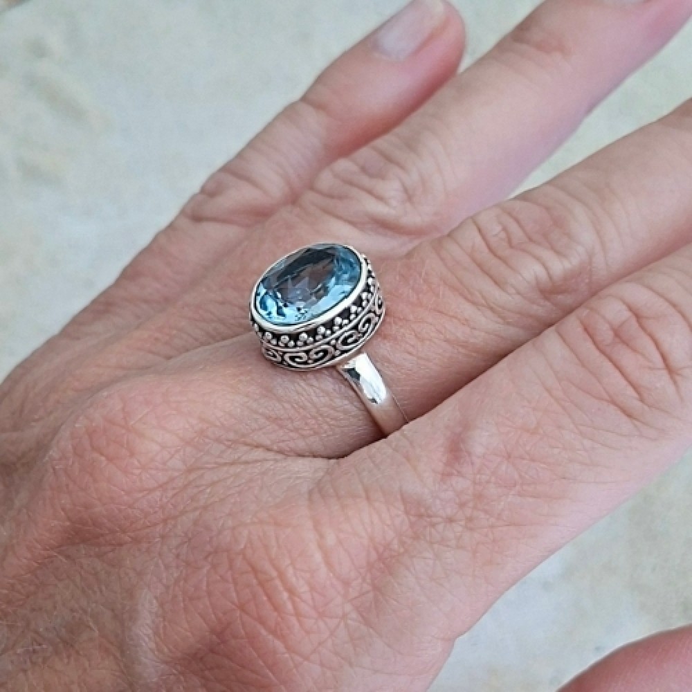 Anel em prata 925 com topázio azul