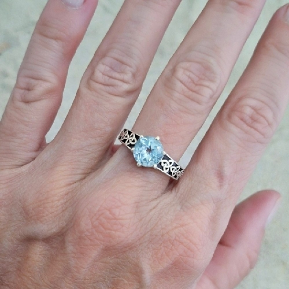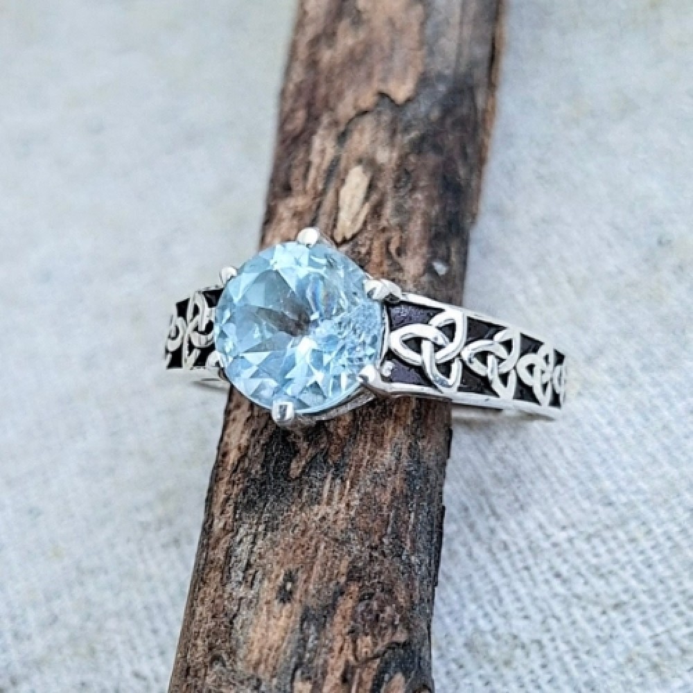 Anel em prata 925 com topazio azul celta