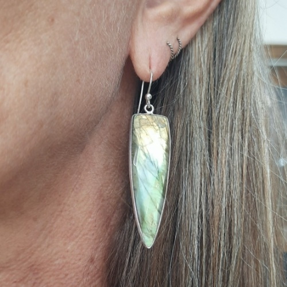 A Labradorita é a pedra da coragem e poderes místicos. Uma poderosa pedra de transformação, é companheira útil na mudança, transmitindo força e perseverança. Ele equilibra e protege a aura, aumenta a consciência e fundamenta as energias espirituais.