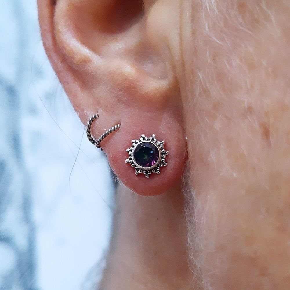 Brinco fixo em prata 925 com topázio místico