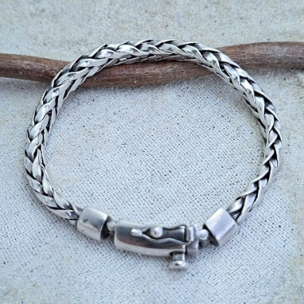 Pulseira em prata 925 trançada Joia perfeita confeccionada em prata de lei envelh..