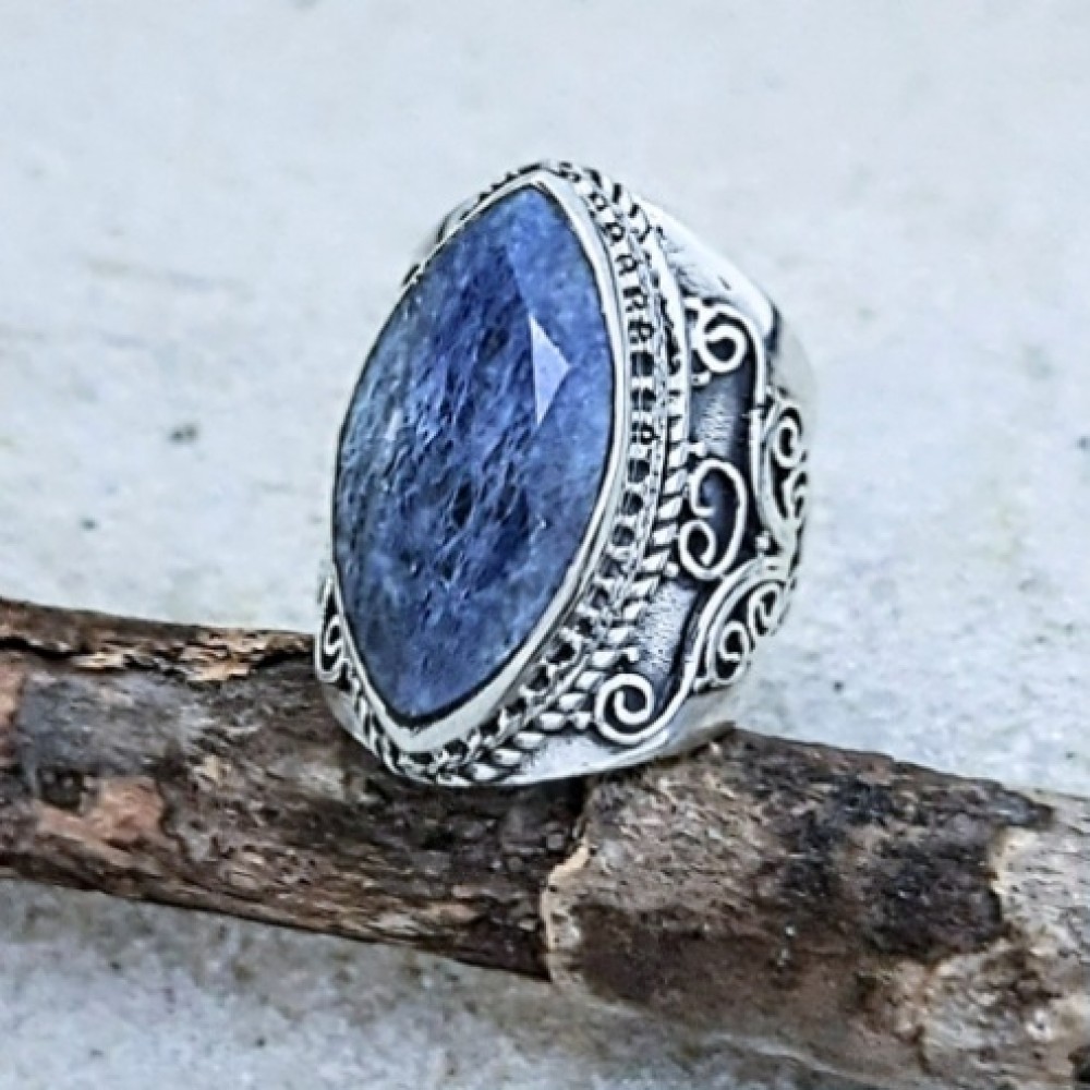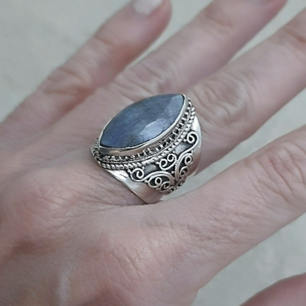 Anel em prata 925 prata com Safira indiana
