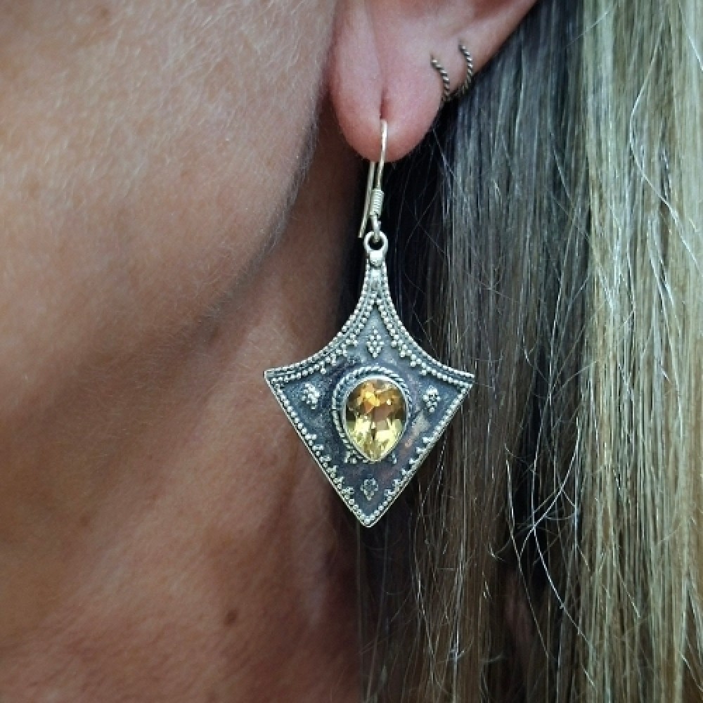 Joia incrível artesanal confeccionada em prata de lei envelhecida, gemas lapidação facetada e acabamento em ganchos