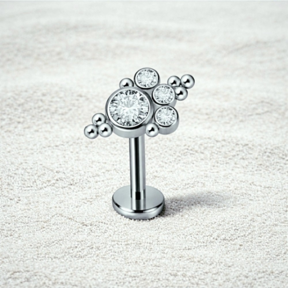 Joia labret estilosa, delicada e exclusiva confeccionada em aço inoxidavel 316 e zirconias