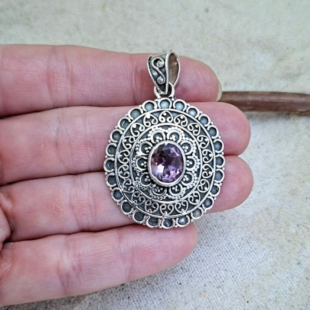 Pingente em prata 925 com ametista